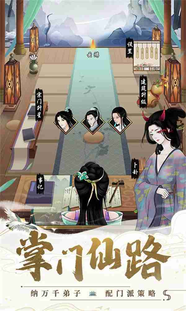 在游戲中,,玩家需要作為掌門去經營整個門派,,可以兢兢業業,,,也可以做個甩手掌門,,,或者不務正業,,,寄情山水……總之一句話,,,,修仙不求人,,,,花式做掌門!!!!